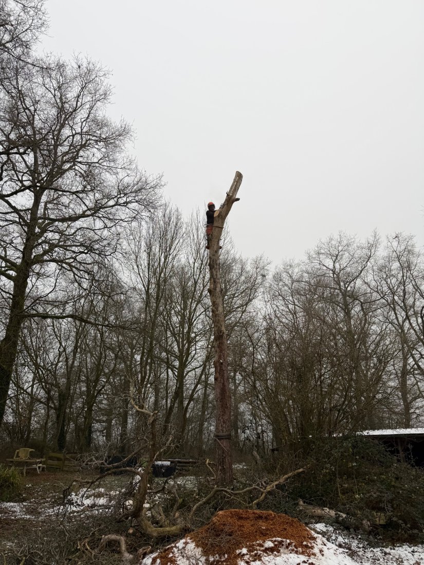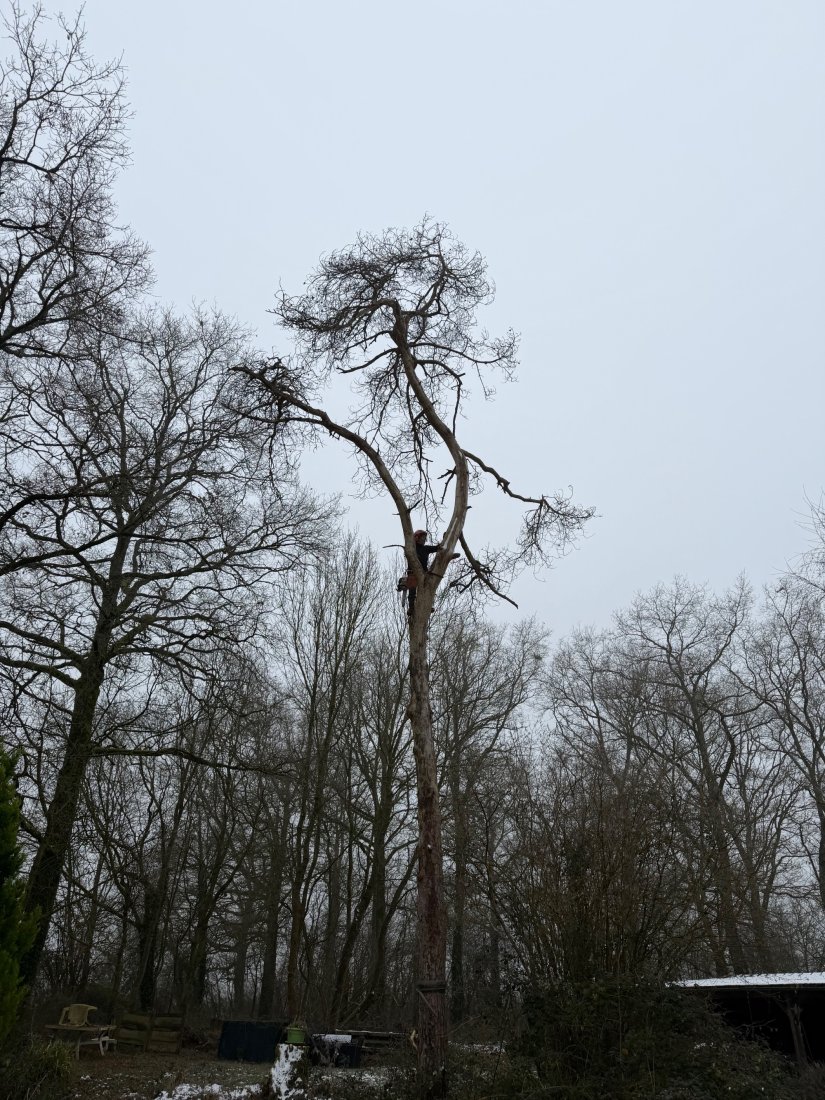 Grâce à nos qualités de grimpeurs professionnels, les missions d'abattage et d'élagage peuvent être menées sans nacelle dans les endroits difficiles ou avec nacelle si besoin.